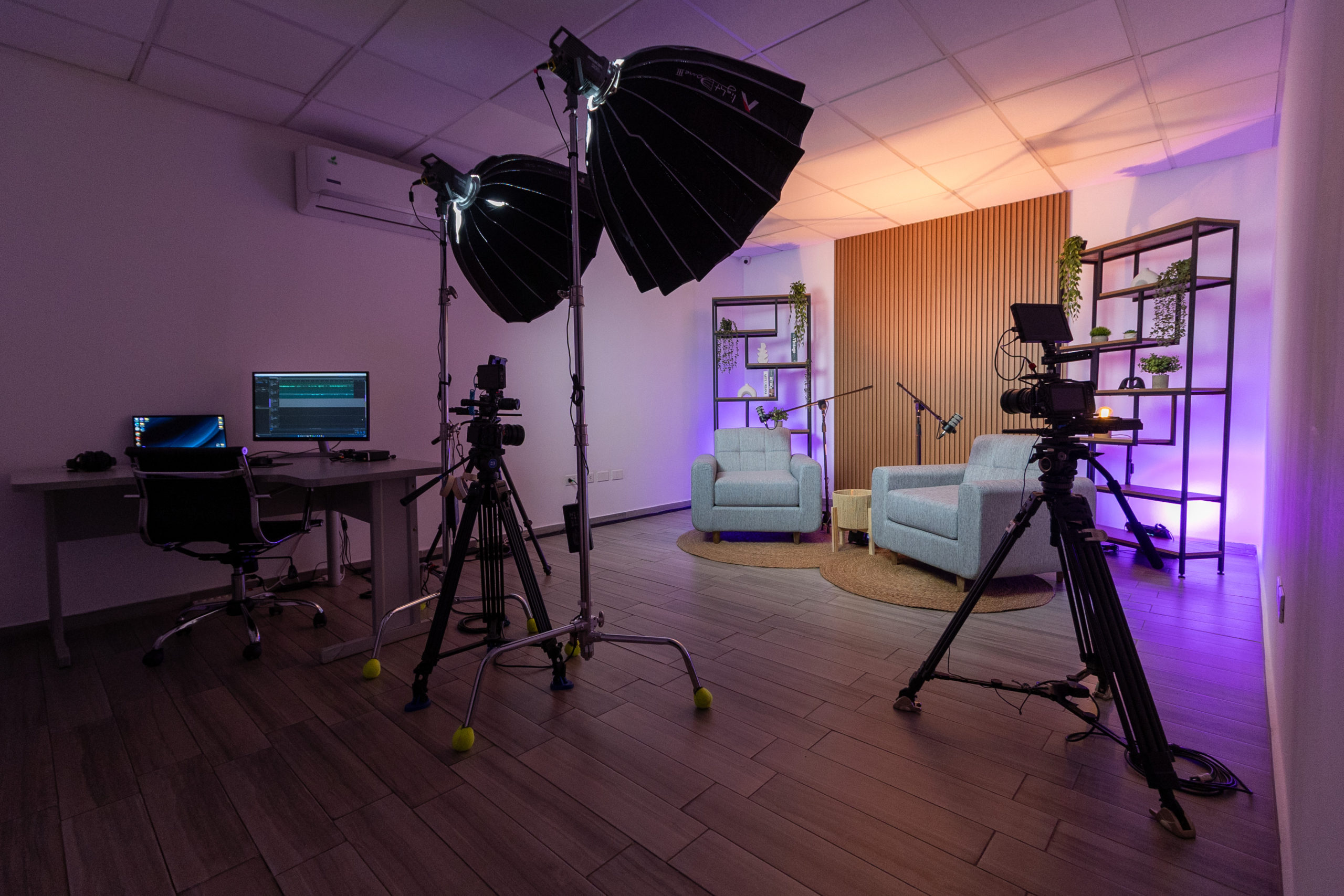 Nuestros estudios prearmados están diseñados para que solo tengas que llegar y grabar. Equipados con iluminación profesional, sonido de alta calidad y una estética moderna, cada espacio está listo para que tu podcast luzca y suene increíble. Ya sea que busques un formato íntimo o una mesa de debate, contamos con opciones versátiles que se adaptan a tu estilo.